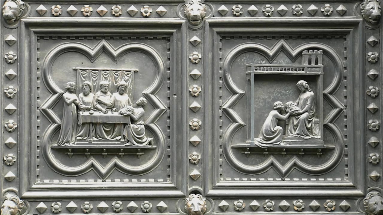 The baptism of Jesus represents the zenith of John’s life, as his most important task in the story of salvation. That’s why Andrea set this particular scene at eye-level. And it’s a scene that encapsulates the master craftsmanship of its creator: Christ is standing in the Jordan River, and the underwater refraction has been perfectly rendered in the relief. The last panels depict the death of John, which begins with the dance of Salomé. As a reward for her performance, she requests the head of the Baptist. The gruesome idea comes from her mother Herodias: John had dared to criticise the queen – and in revenge, she gets his head.