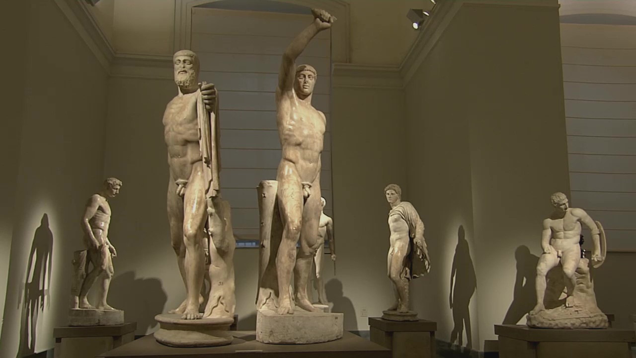 In the year 514 BC the two Athenians Harmodius and Aristogeiton assassinated the brother of the tyrant Hippias. The deed soon grew into a symbol of Greek democracy. The Athenians erected statues of the Tyrant-Killers in their Agora, made in 476 BC by the famous sculptors Kritios and Nesotes. The sculptures were well known in antiquity but were subsequently lost. Thanks to these Roman copies, we do know how they looked. They are considered a major work of the so-called Severe Style that marked the transition from the archaic style to classical sculpture in Greece. The two figures were not originally intended as a unit – each was meant to have its own effect. But the two are connected through their deed – pursuing the ideal of freedom for which they fought together and ultimately gave their lives.
