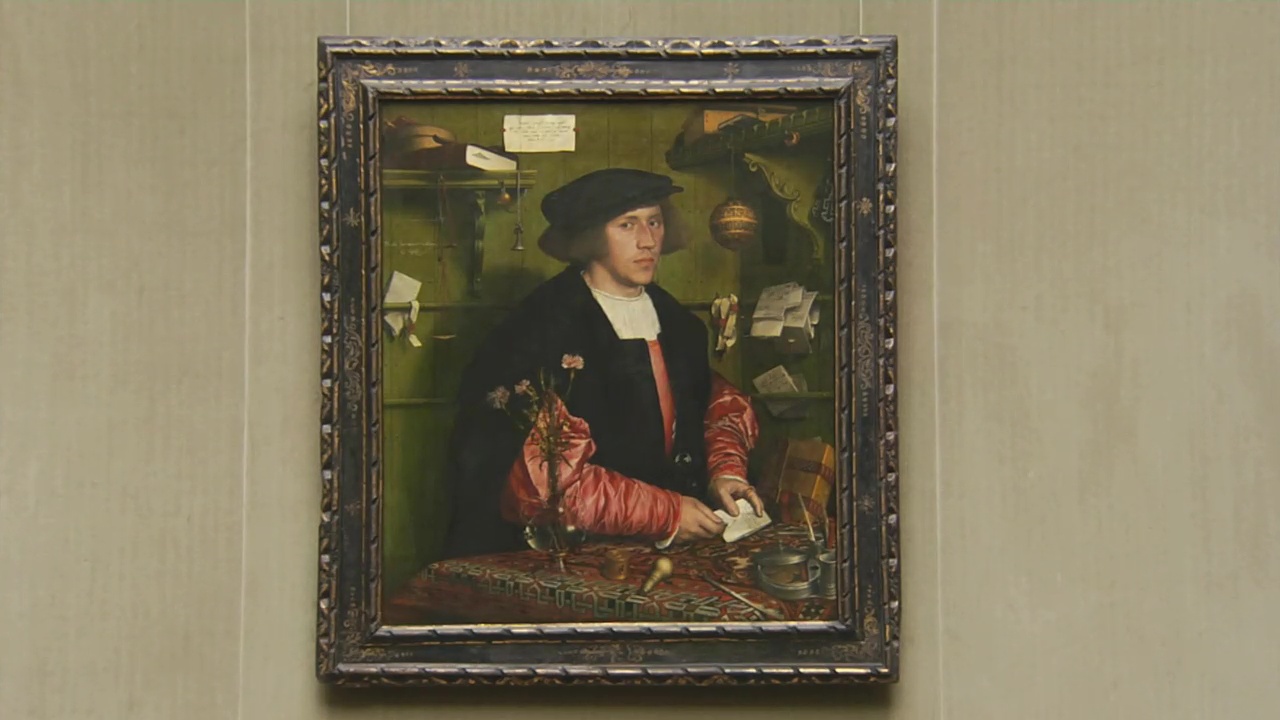 Like Hieronymus Holzschuher, Georg Gisze was a prosperous merchant. He lived in London, but hailed from Gdansk. He wanted to impress his bride-to-be back home. So Holbein showed Gisze in the context of his life as a merchant – and wrote below just to make sure: